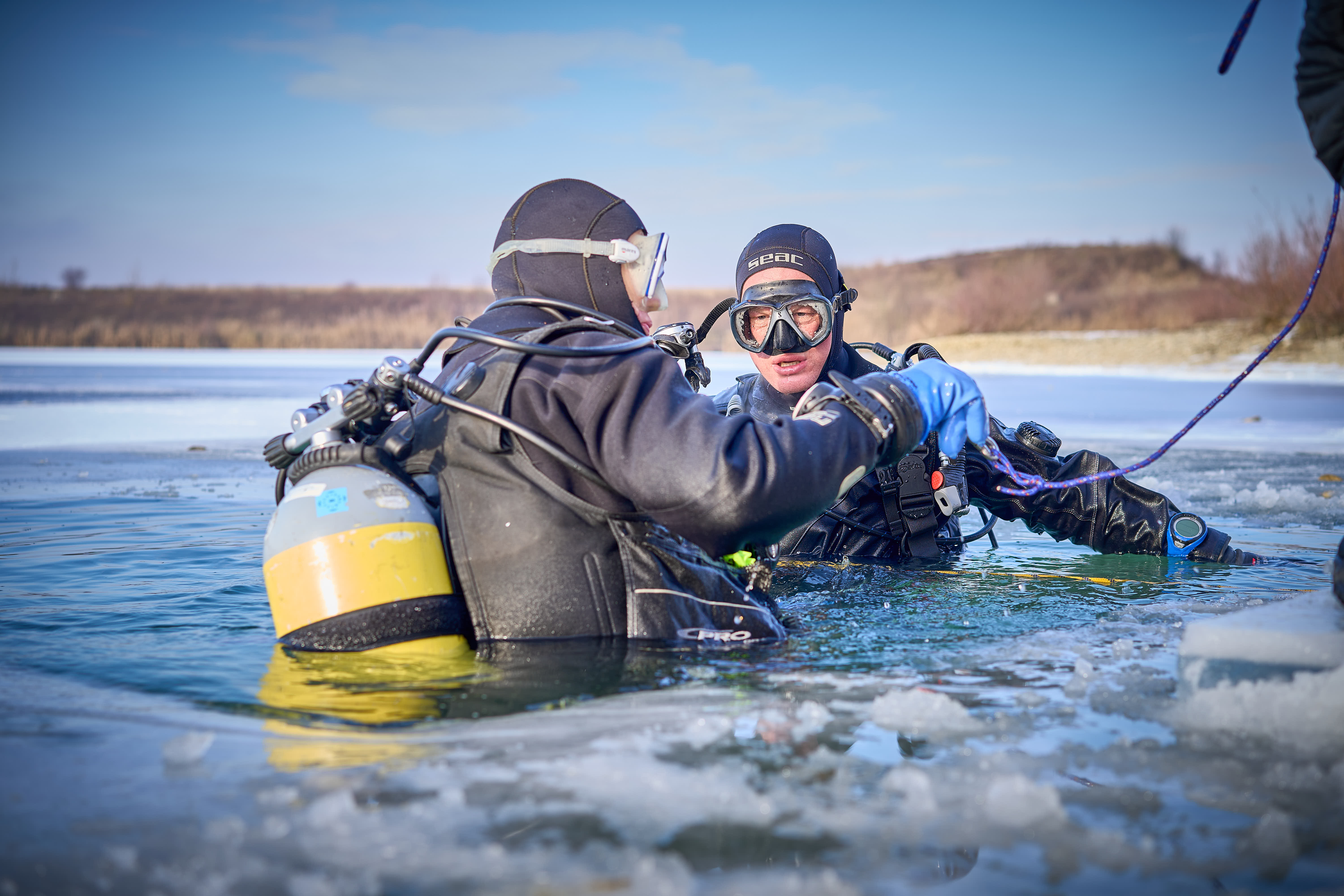 Die Tauchgänge wurden in wechselnden Zweierteams durchgeführt. Zunächst gingen Daniel Gürster und Christian Kellner gemeinsam ins Wasser, anschließend absolvierte Daniel Gürster einen weiteren Tauchgang zusammen mit Andreas Stark. Ralf Saller tauchte ebenfalls zweimal: einmal gemeinsam mit Phillip Drexler und ein weiteres Mal mit Florian Altschäffl. Auf diese Weise konnten alle Tauchgänge sicher und geordnet durchgeführt werden.