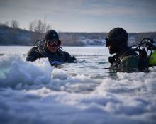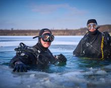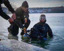 Am Dreikönigstag fand wieder unser traditionelles Antauchen statt – ein fester Bestandteil im Vereinskalender. Trotz einer Lufttemperatur von über minus 7,5 Grad wagten sich 6 Taucher ins eiskalte Wasser. Rund 40 Vereinsmitglieder verfolgten das Geschehen als Zuschauer vom Ufer aus.