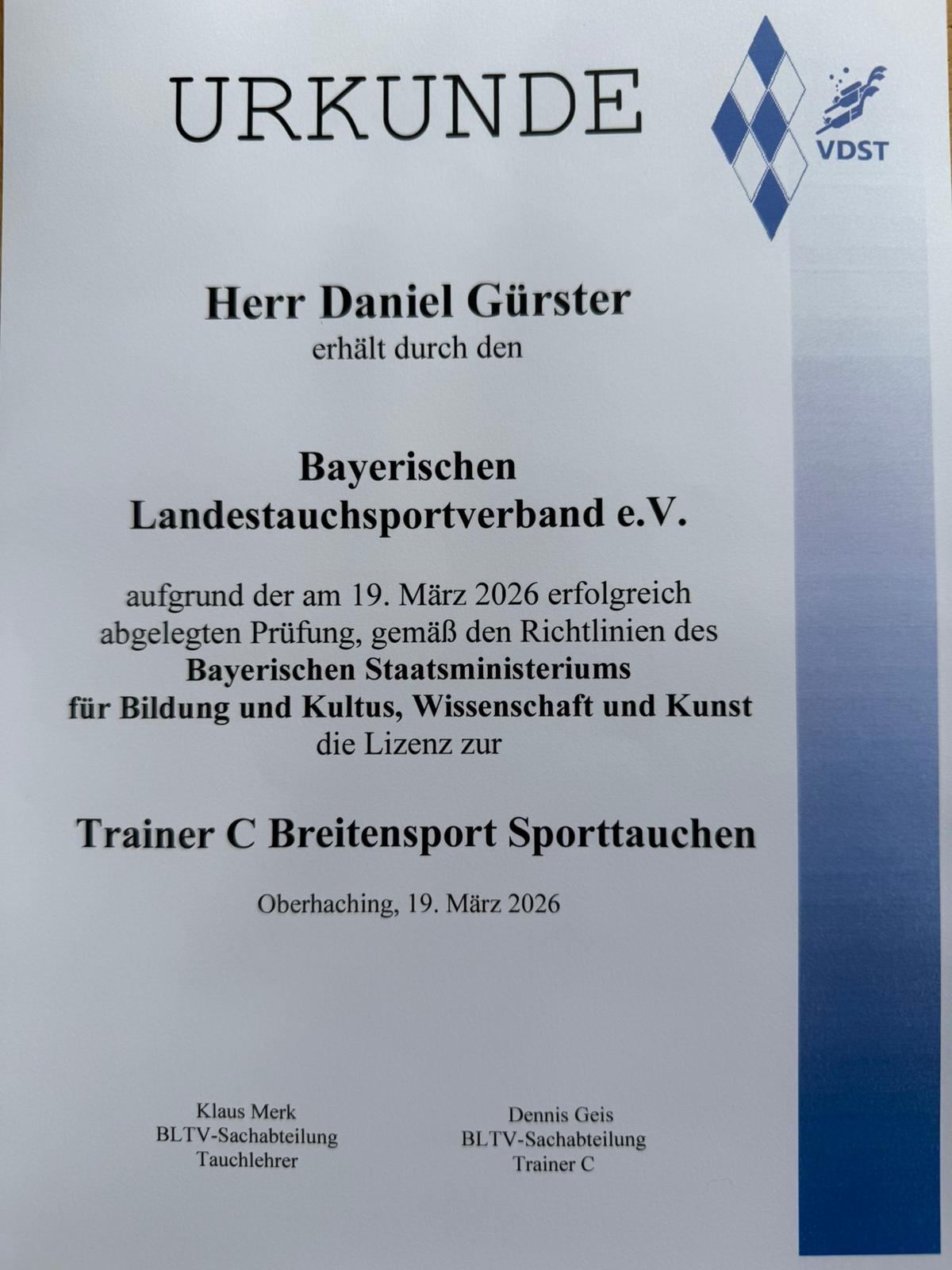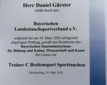 Wir freuen uns über die Neuigkeiten, dass unser Vorstand Daniel Gürster und unsere Jugendleiterin Charlotte Miedl ihre Trainer-C-Ausbildung im Breitensport Tauchen erfolgreich absolviert haben.