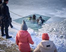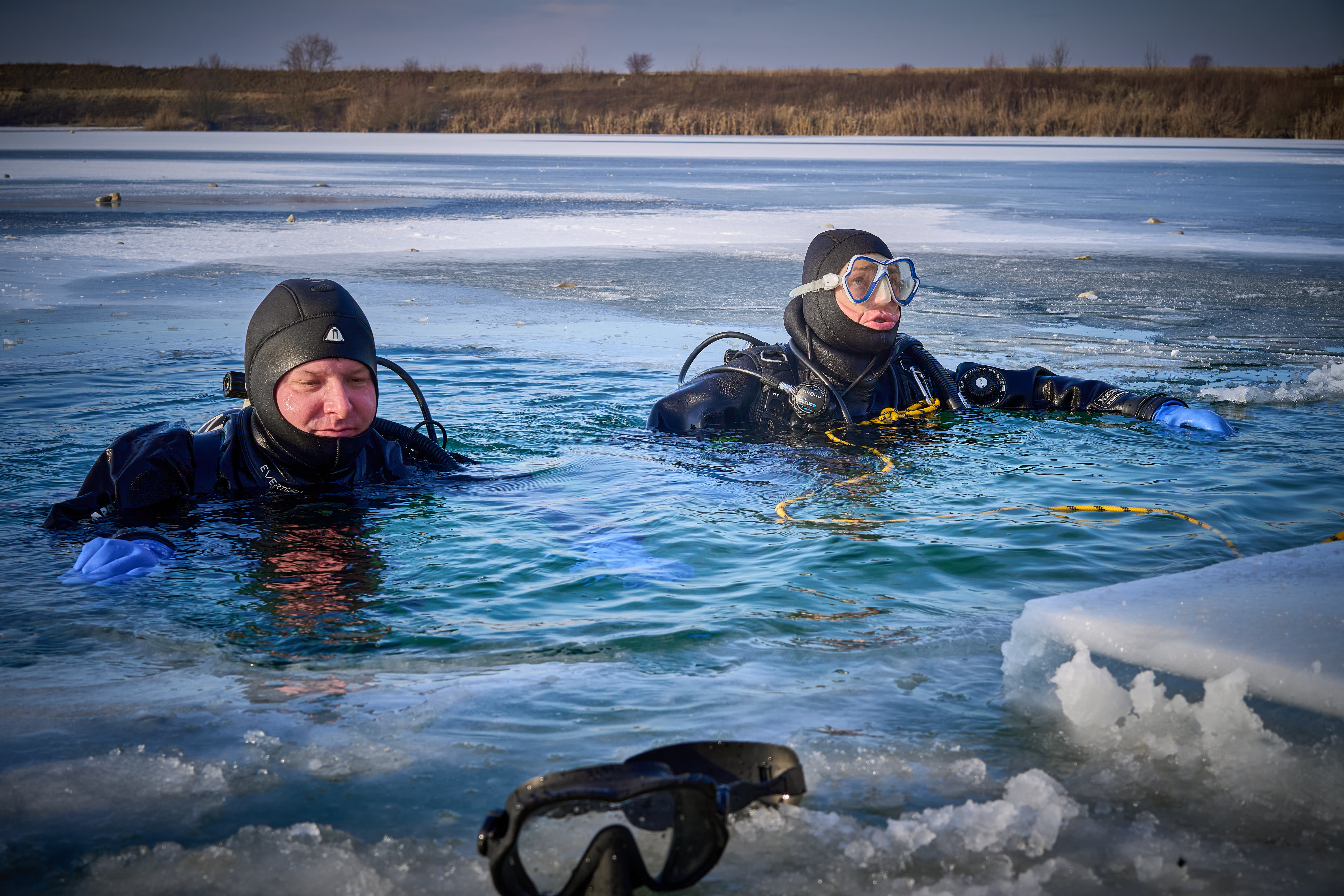 Der Winter zeigte sich dabei von seiner besonders frostigen Seite: Der Weiher war stellenweise mit einer etwa 5 cm dicken Eisschicht bedeckt. Diese außergewöhnlichen Bedingungen machten das Antauchen zu einem echten Erlebnis und sorgten für großen Respekt bei den Zuschauern.