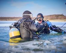 Am Dreikönigstag fand wieder unser traditionelles Antauchen statt – ein fester Bestandteil im Vereinskalender. Trotz einer Lufttemperatur von über minus 7,5 Grad wagten sich 6 Taucher ins eiskalte Wasser. Rund 40 Vereinsmitglieder verfolgten das Geschehen als Zuschauer vom Ufer aus.